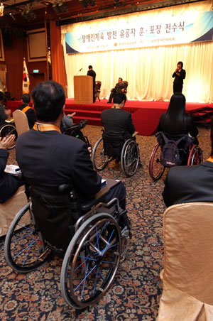 대한장애인체육회는 10일 오후 서울 송파구 방이동 서울올림픽파크텔 올림피아홀에서 장애인체육발전유공자 훈·포상 전수식을 가졌다.