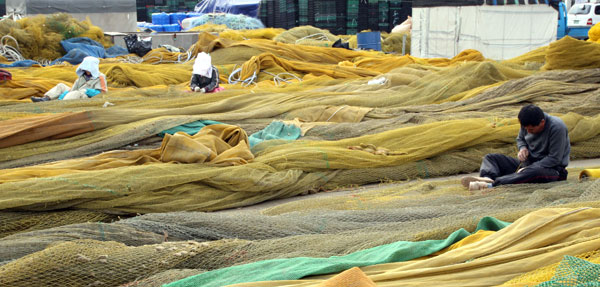 조업철 앞두고 어구 손질