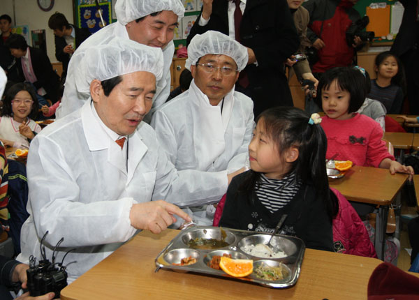 정세균 대표는 15일 무상급식을 시행하는 과천 관문초등학교를 방문해 무상급식 현황을 파악하고 학부모, 학교 관계자들과 간담회를 했다.