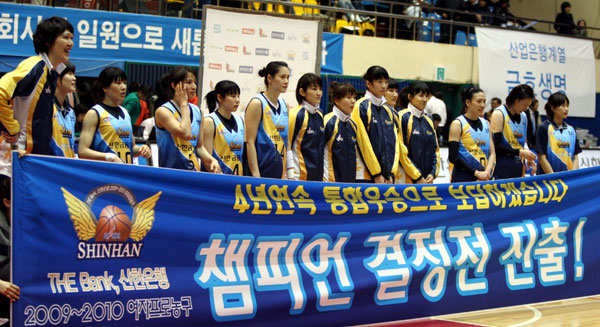 신한은행은 23일 구리시체육관에서 열린 THE Bank 신한은행 2009~2010 여자프로농구 4강 플레이오프(5전3선승제) 3차전에서 ‘바스켓 퀸’ 정선민(28점·13리바운드·8어시스트)을 앞세워 금호생명을 72-64로 제압했다.