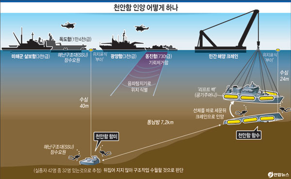 또 “생존 여부를 가르는 관건은 산소의 유무인만큼 함선 내부로 산소를 공급해 혹시 있을 수 있는 생존자가 계속 호흡을 할 수 있도록 하는 것이 중요하다”고 설명했다.