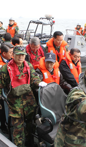 이 대통령은 다시 고무보트 편으로 독도함에 돌아왔다가 헬기 편으로 백령도에 있는 해병 6여단에 도착해 관련 보고를 받았다.
