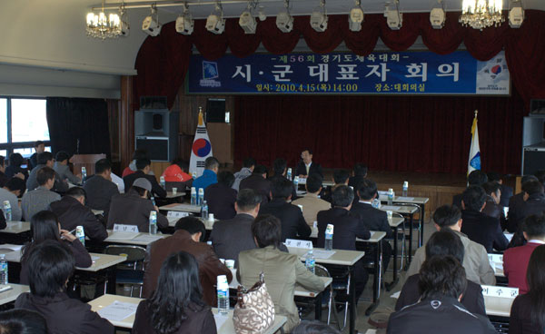 도체육회는 15일 도체육회관 10층 대회의실에서 제56회 경기도체육대회 시·군대표자회의를 개최, 시·군체육회 협조사항과 경기일정, 종목별 대표자회의 일정 등을 설명하고 대진종목에 대한 대진추첨을 실시했다.