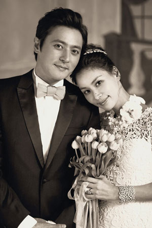 장동건·고소영 커플의 흑백 웨딩사진 일부가 22일 공개됐다.