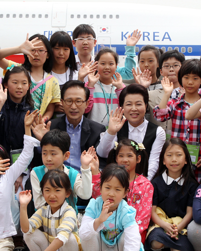 특히 대통령 전용기(공군 1호기)에 어린이들과 함께 탑승, 글로벌 시대의 꿈나무들에게 세계의 중심 무대로 나아가는 큰 꿈을 갖도록 하는 자리를 마련했다.