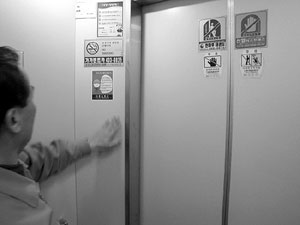 시흥소방서는 18일 아파트 현관문 및 엘리베이터 3천여 곳에 화재예방 홍보스티커를 부착했다.