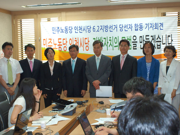 민주노동당 인천시당은 7일 오전 인천시청에서 6.2 지방선거 당사자 합동기자회견을 갖고 수도권에서 지방자치의 모범을 만들 것을 다짐했다.