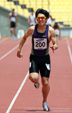 김국영은 7일 대구스타디움에서 열린 제64회 전국육상경기선수권대회 남자 100m 예선과 준결승전에서 연거푸 한국기록을 경신하며 ‘국내 육상 단거리 1인자’ 자리에 올랐다.
