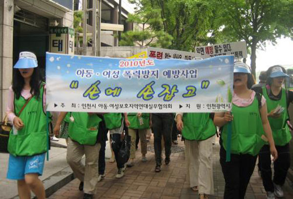 아동·여성 관련 45개 기관회원으로 구성된 인천시아동여성보호지역연대 실무협의회 지난 17일 아동·여성폭력예방을 위한 워크샵을 비롯, 주안역사 2층에 폭력 예방 전시회 갖고 구 시민회관까지 가두 캠페인을 실시했다.