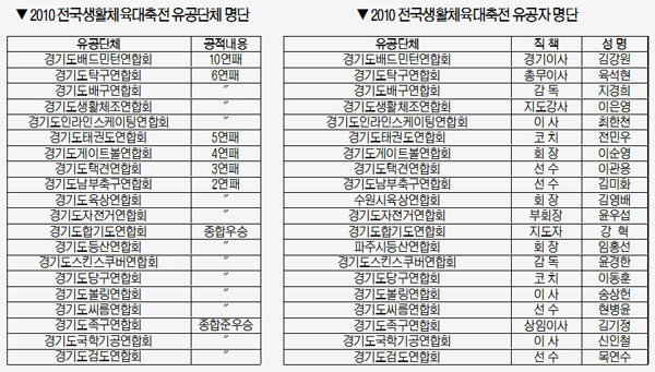 이날 해단식에서는 김문수 도지사와 강용구 도생활체육회장을 비롯해 시·군생활체육회 회장, 종목별연합회 회장 등 내빈과 선수단 등 400여명이 참석해 종합우승 10연패를 축하한다.