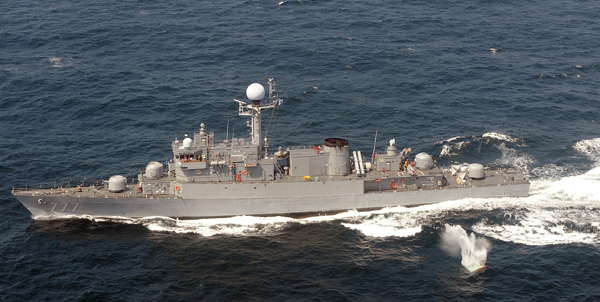 대잠수함 추적 훈련은 4천400톤급 구축함인 최영함이 적 잠수함을 식별하고 구축함에 탑재된 링스헬기가 출격해 어뢰를 발사하는 한편 초계함인 대천함(1천200톤급)이 폭뢰로 공격하는 방식으로 진행됐다.