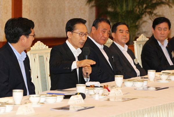 이날 회의는 이 대통령이 참석자들의 건의사항을 한 사람도 빠짐없이 청취하면서 예정시간을 1시간 넘긴 2시간30분 동안 진행됐으며, 정부와 청와대 측 배석자들은 발언 기회를 갖지 못했다는 후문이다.
