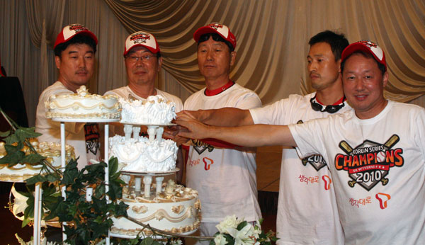 한편 김성근 감독을 비롯한 SK 선수단은 19일 밤 대구 그랜드호텔에서 우승을 자축하는 축하 파티를 열고 기쁨을 만끽했다.