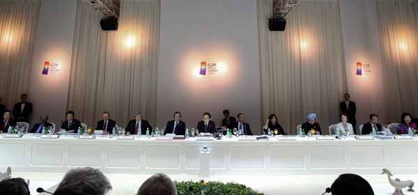 이날 정상들은 ▲세계경제와 프레임워크 ▲국제금융기구 개혁 및 글로벌 금융안전망 ▲개발 ▲금융규제 개혁 ▲에너지·반부패 등 5개 세션을 진행한다. 이 대통령은 그 결과를 담은 서울 정상선언을 오후 4시 공식 발표할 예정이다.