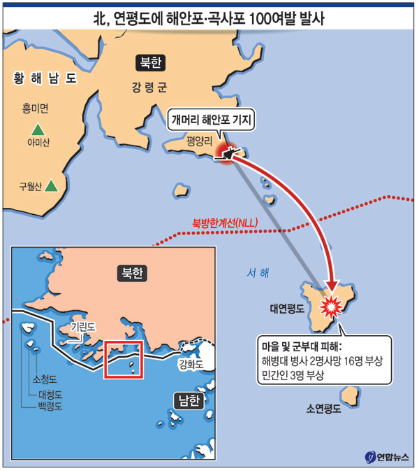 마을 주민들도 방공호로 대피했으나 주민 3명 부상했으며 추가 피해는 아직 확인되지 않고 있다. 북한이 우라늄 농축시설을 전격 공개한데 이어 해안포 도발을 감행함에 따라 남북간 군사적 긴장이 최고조에 달했다.