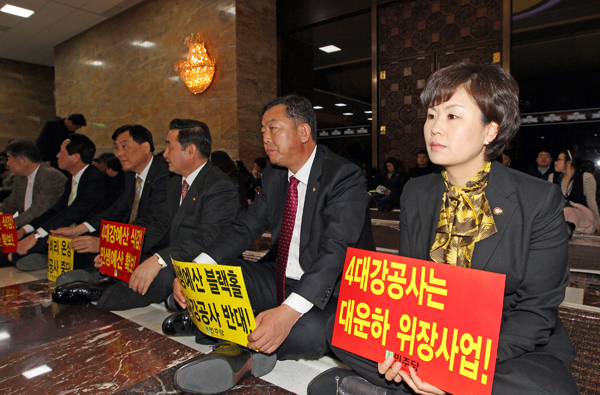 반면 민주당 계수조정소위 의원들은 이날 오전 긴급 기자회견을 열고 “야당이 회의를 진행하자는데, 여당이 이를 보이콧하는 것은 처음 있는 일”이라며 “이는 청와대가 연출하고 한나라당이 실행한 정치코미디"라고 비판했다.