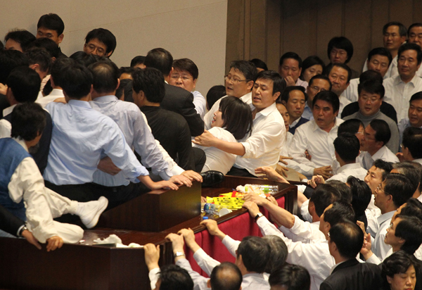 밀고 밀리고… ‘아수라장’