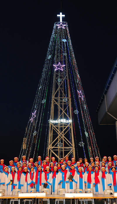 점등식에는 이영훈 순복음교회 목사와 김문수 경기지사, 나경원.차명진 한나라당 의원, 해병 2사단장 등을 비롯한 400여명의 신도들이 참석했다.