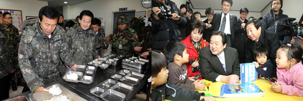 이날 방문에는 특히 육군 병장 출신인 손학규 대표를 비롯해 현역 제대자들이 동행해 여권 지도부와 차별화를 꾀했다.
