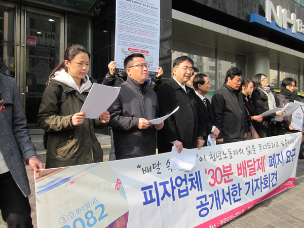 “배달노동자 위협 ‘30분 배달제’ 폐지하라”