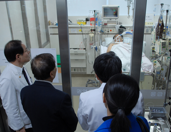 또 “편히 마음을 잡수시고 계시라”며 “아주대병원에서 최선을 다해주셔서 정부에서도 고맙게 생각하고 있다”고 거듭 감사 인사를 전했다.