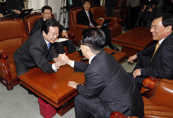 한나라당 김무성, 민주당 박지원 원내대표는 14일 오후 국회에서 회동을 가졌으나 ▲구제역 국정조사 ▲국회 민생특위 등 5개 특위 구성 ▲친수구역특별법을 포함한 5개 법안의 수정·폐기 등 쟁점을 놓고 이견을 좁히지 못했다.