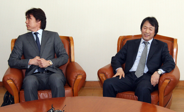조 감독과 홍 감독은 2일 서울 종로구 신문로 축구회관 6층 회의실에서 조중연 대한축구협회장과 이회택 기술위원장, 조영증 기술교육국장이 모인 가운데 최근 논란이 빚어진 대표선수 차출 문제에 대한 원칙과 해결 방안을 찾는 회의를 했다.