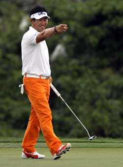 양용은은 2타 뒤진 마지막 18번 홀(파5)에서 이글을 노리고 그린을 향해 두번째 샷을 날렸지만 볼은 벙커에 빠지고 말았다.