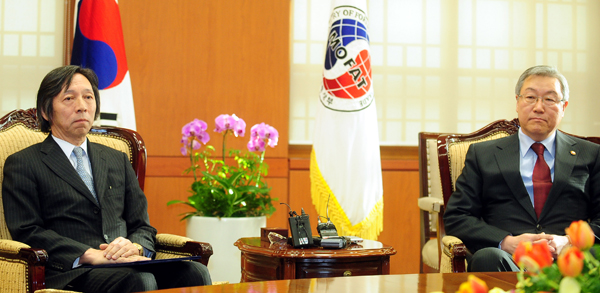 굳은 표정의 한·일