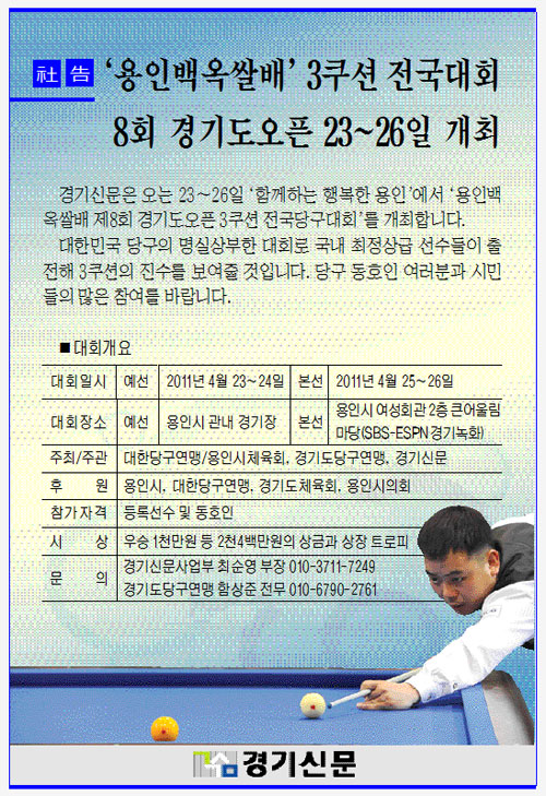 ‘용인백옥쌀배’ 3쿠션 전국대회