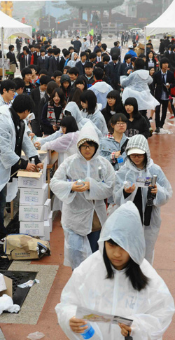 학생들을 인솔한 이현수(32) 교사는 “문화유적을 통한 체험학습을 위해 행사에 참여했다”며 “비로 인해 학생들의 불만도 있었지만 학교에서 보다 밝은 학생들의 표정을 보니 뿌듯하다”며 흐뭇한 표정.