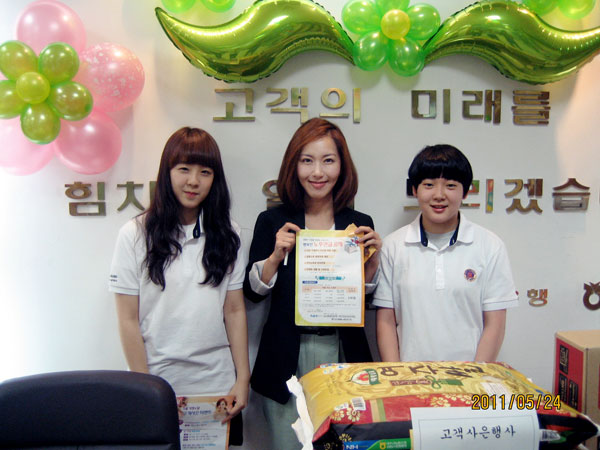 농협중앙회 죽전보정지점은 24일 인기 걸그룹 SES 출신 가수 ‘슈’를 명예지점장으로 임명, 팬 사인회 등 고객사은 행사를 실시했다. 한편, 죽전보정점은 가정의 달을 맞아 이달말까지 신규상품(예금, 적금, 펀드, 카드, 공제 등)을 가입 고객에게 사은품을 증정하는 ‘대고객 감사 사은행사 및 경품 대잔치’를 진행한다.