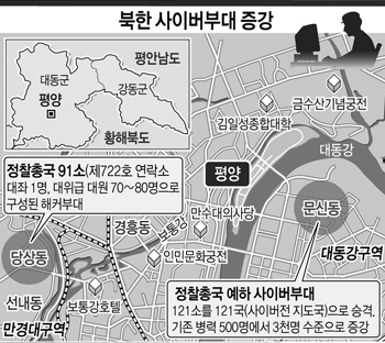 북한이 ‘정보전사(해커)’ 양성을 위해 전국의 영재를 평양으로 불러모아 해외유학 등 각종 특혜를 주면서 사이버부대의 규모를 기존의 6배로 늘리는 등 사이버전에 ‘올인’하는 것으로 알려졌다.