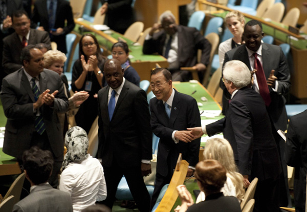 이날 오후 3시부터 열린 총회에 상정된 반 총장 추천 결의안이 192개 회원국의 박수 속에 통과되는 데 걸린 시간은 불과 3초 정도였지만, 1시간 조금 넘게 열린 총회의 나머지 시간은 그에 대한 찬사와 박수로 채워졌다.