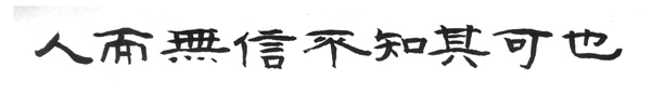 믿음이 없는 사람은 짐싣는 큰 수레에 멍에와 수레를 연결한 튼튼한 가로목이 없는 것과 같고, 전쟁에 나아갈 병거(兵車)에 말을 부릴 멍에장치가 없음과 같으니 무엇으로 멍에삼아 앞으로 나아갈 수 있을까. 한 인간이 신뢰가 없다면 그 인간의 어떤 장점도 높이 평가할 수 없다.
