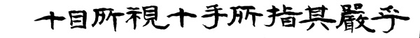 십수소지란 여러 사람들이 손가락질 하고 있다는 말이다. 중국의 강희장이라는 사람이 풀이한 것을 보면 十目은 열사람의 눈이 아니라 열 방향으로부터 모든 시선을 말한다. 남의 시선뿐만 아니라 자기 혼자 있을때라도 행동을 삼가하고 조신하라는 뜻이다. 대학(大學)에서는 故君子 愼其獨也(그래서 군자는 홀로 있을때 삼간다)로 되어있고 중용(中庸)에서는 故君子 必愼其獨也로 필(必)자가 추가되어 더욱 강조하고 있다. 다른 사람이 보거나 듣는 사람이 없는 곳에 있을 때에도 도리에 어긋나는 행동이나 그런 생각을 하지 않는 마음과 태도로 해석되어온 것이다. 남이 보이지 않는 곳에서 못된 짓을 하면서 착한사람 앞에서는 악한 것을 숨기고 착한 것만 내보이려고 해서는 안된다. 자기가 혼자 한 일이라도 수 많은 사람들이 지켜보고 있다고 생각하면 소름끼치는 일이니 조심해야 한다. 순자(筍子)에 聲無小而不聞行無隱而不形(작다고 들리지 않는 소리가 없고 숨긴다고 드러나지 않는 행동이 없다)라는 말이 있다. 지도자라고 생각하는 사람들이야 말로 대중의 눈과 마음을 두려워 하지 않을 수 없을 것이다.