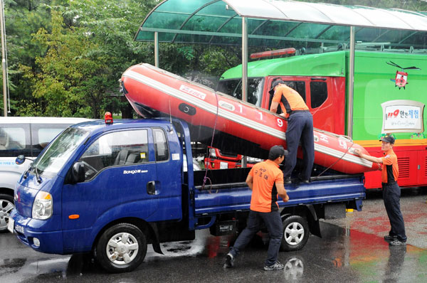 분당소방서는 지난 27일부터 28일까지 21건의 폭우 배수지원 활동을 폈다. 소방서는 비가 당분간 지속된다는 예보에 따라 보유 수방장비 3종 25점에 대해 점검하고 구조보트도 즉시 출동할 수 있도록 조치했다.