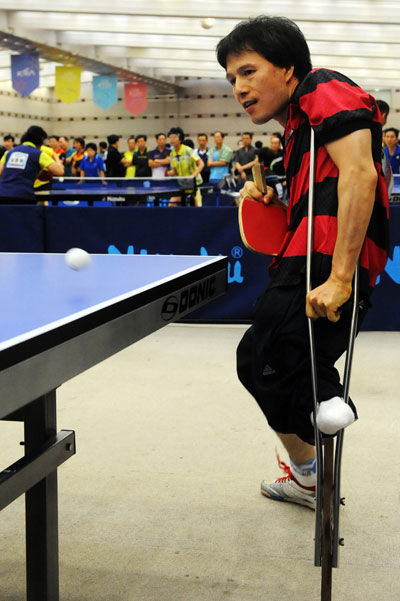 ‘2011 과천 토리아리배 생활체육 전국오픈탁구대회’에는 지난해 대전에서 열린 전국장애인체육대회에서 경기도에 단체전 금메달을 안긴 장애인 참가자가 있어 화제다.