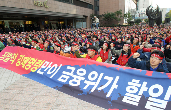 론스타 징벌매각 노조원 함성