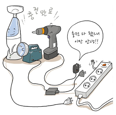 (4) 충전이 완료되면 충전기나 어댑터 전원을 빼세요