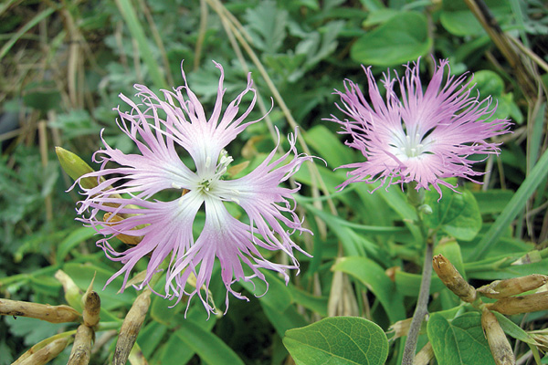 ▲ 우리 국토의 막내 독도에는 모두 51종의 자생식물이 자라고 있는 것으로 확인됐다. 독도의 야생화는 우리 민족의 특성을 대변하듯, 모진 비바람을 이겨내고 바위틈에서 굳건하게 생명을 이어가며 아름다운 꽃을 피우고 있다. 육지식물과는 다르게 섬 안에서 자가수정을 통해 순수종자의 맥을 이어가는 것이 특징이다. 진종구 FL환경안보아카데미 원장이 대구지방환경청 독도 식물탐사반원의 일원으로 지난 11월 중순 독도에 들어가 촬영해 온 야생화를 독자 여러분들께 공개한다.사진 맨위부터 해국, 술패랭이, 금강아지풀. |
