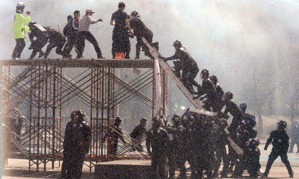 사진전에는 본지 노경신 사진부장의 ‘전교조 고용안정 퍼포먼스’와 이준성 기자 ‘불법무장 시위대 진압훈련’, 최우창 기자의 ‘해병대 총기난사 사고 유가족’ 등 다양한 보도 사진을 한 눈에 확인할 수 있다.