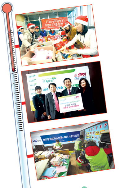 삼성중공업 전기전자사업부에서는 임직원들이 산타로 변신, 유민이네 가정과 같이 춥고 외로운 겨울을 보낼 오산, 화성에 거주하는 저소득가정 50여명에게 희망의 온기를 전했다.