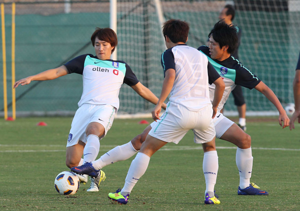 홍명보(43) 감독이 이끄는 대표팀은 19일 오후 5시(현지시간)부터 오만 무스카트의 술탄 카부스 스포츠 콤플렉스 내 보조 축구경기장에서 한 시간가량 훈련했다.