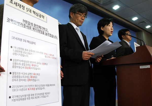 통합진보당 조세재정 공약 발표 “부장증세로 복지재정 확대”
