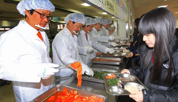 부천 친환경무상급식 확대 실시… 앞치마 두룬 도교육감·시장