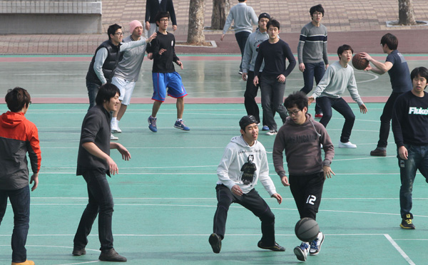 학생들, 봄바람에 농구경기 즐기며 몸 풀다