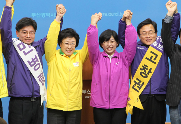 부산으로 간 한명숙·이정희 ‘민심 잡기’