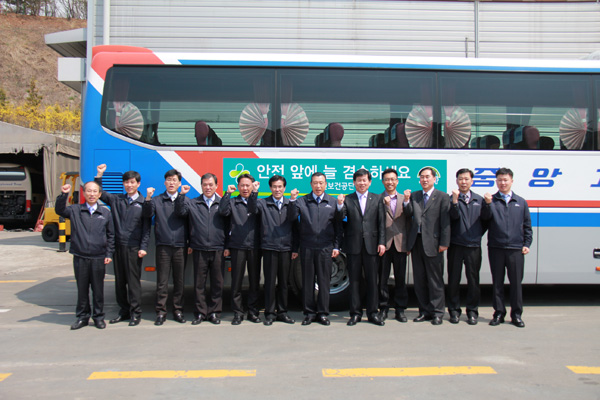 이어 열린 안전문화 홍보물 제막식에서는 중앙고속에서 운행하는 100대의 경부행 버스 내·외부에 안전문화 슬로건을 부착하는 행사를 실시했다.