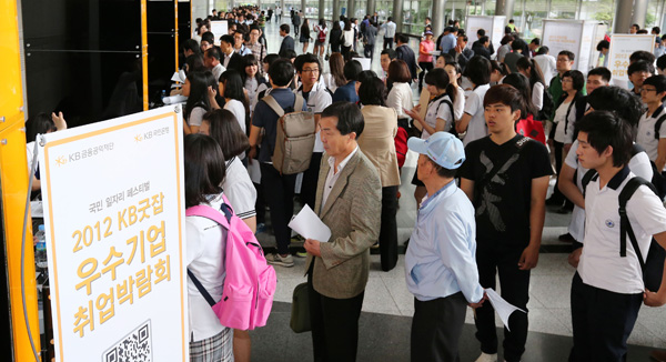 29일 오전 서울 강남구 삼성동 코엑스에서 ‘2012 KB굿잡 우수기업 중동 취업박람회’가 열려 많은 인파가 몰려 있다. 이번 박람회는 중동취업을 위한 전용관이 최초로 운영되고 특성화고, 대졸 신입은 물론 전역 장병 및 베이비부머 은퇴자 등의 재취업을 돕는 국내 최대 규모이다.